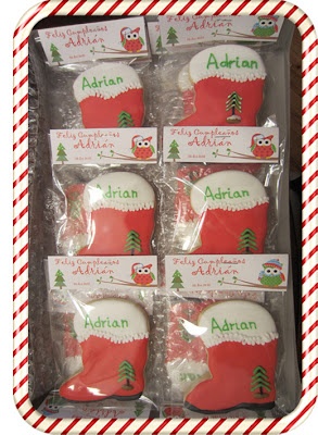 | Detalle de las figuras de regalos hechas con fondant, el arbolito esta realizado con glasa y manga |